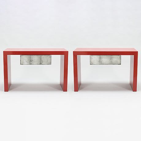A pair of red lacquered tables by Artist Kaisa Blomstedt Sweden 1990