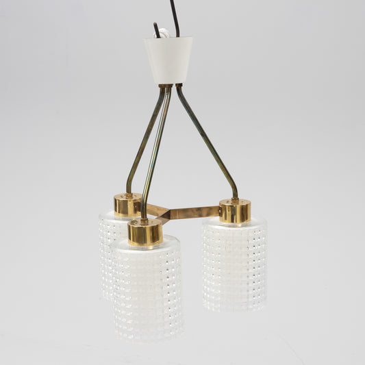 Glass and Brass Pendant 3 Lights by Orrefors Sweden, 1960