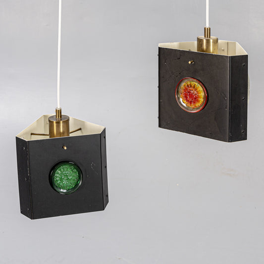 Pair of Triangular Pendants Light by Hans Bergstrom, Sweden, 1950