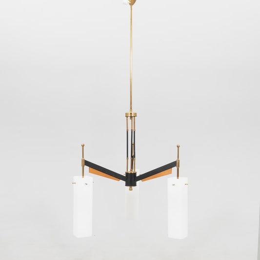 Stilnovo Chandelier 3 glass shades Italy 1960