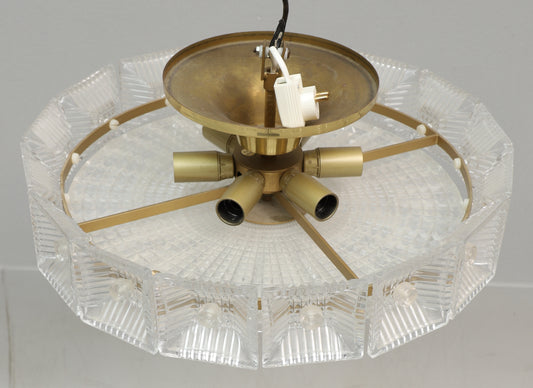 Ceiling lamp by Glashütte Limburg Brass and glass Germany 1970s Labelled