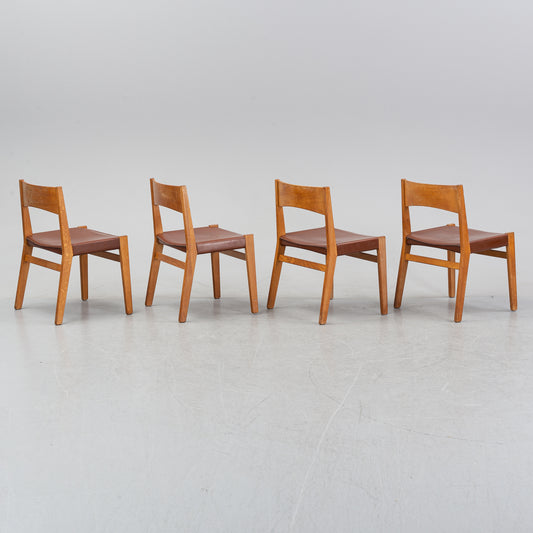 Four Oak Chairs with Leather Seat by John Vedel Rieper, Denmark, 1962