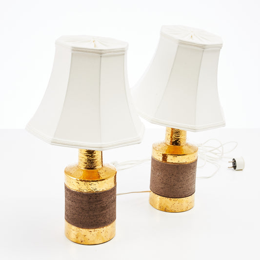 Bitossi table lamp a pair gold ceramic Italy 1970