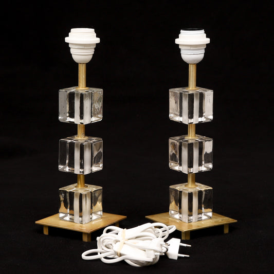 Glass and brass lamps, a pair by Malmö Metalurufabrik AB Sweden 1960