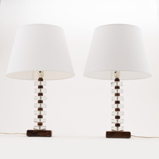 Pair of Glass Table Lamps by Luxus, Vittsjö Sweden 1970 Marked