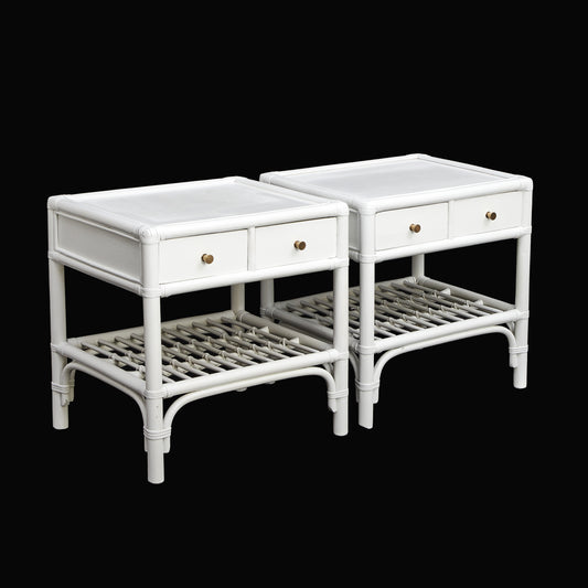 White Bamboo and Wood pair of Nightstands for DUX Sweden, 1960