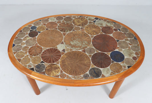 Tue Poulsen Coffee Table "Oval" ceramic and Teak Haslev Denmark 1960 Signed