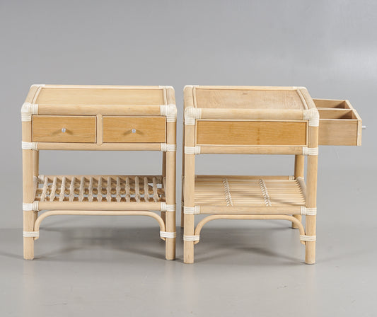 Dux bedside tables a pair model "Evita" Oak and Bamboo Sweden 1965s