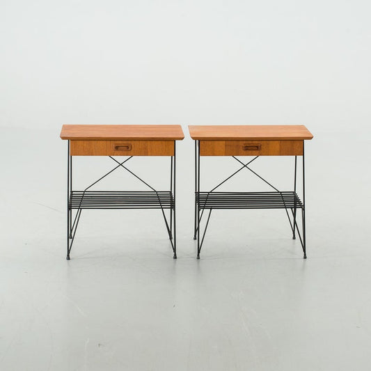 Nightstand Teak on Metal Base a pair Anonymous, Sweden, 1950