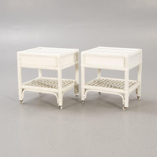 Pair of Nightstand White Lacquer Bamboo and Wood by DUX, Sweden, 1960