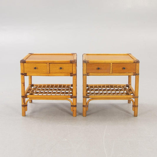 Pair of Bamboo and Wood Nightstand Anonymous for DUX Sweden, 1960