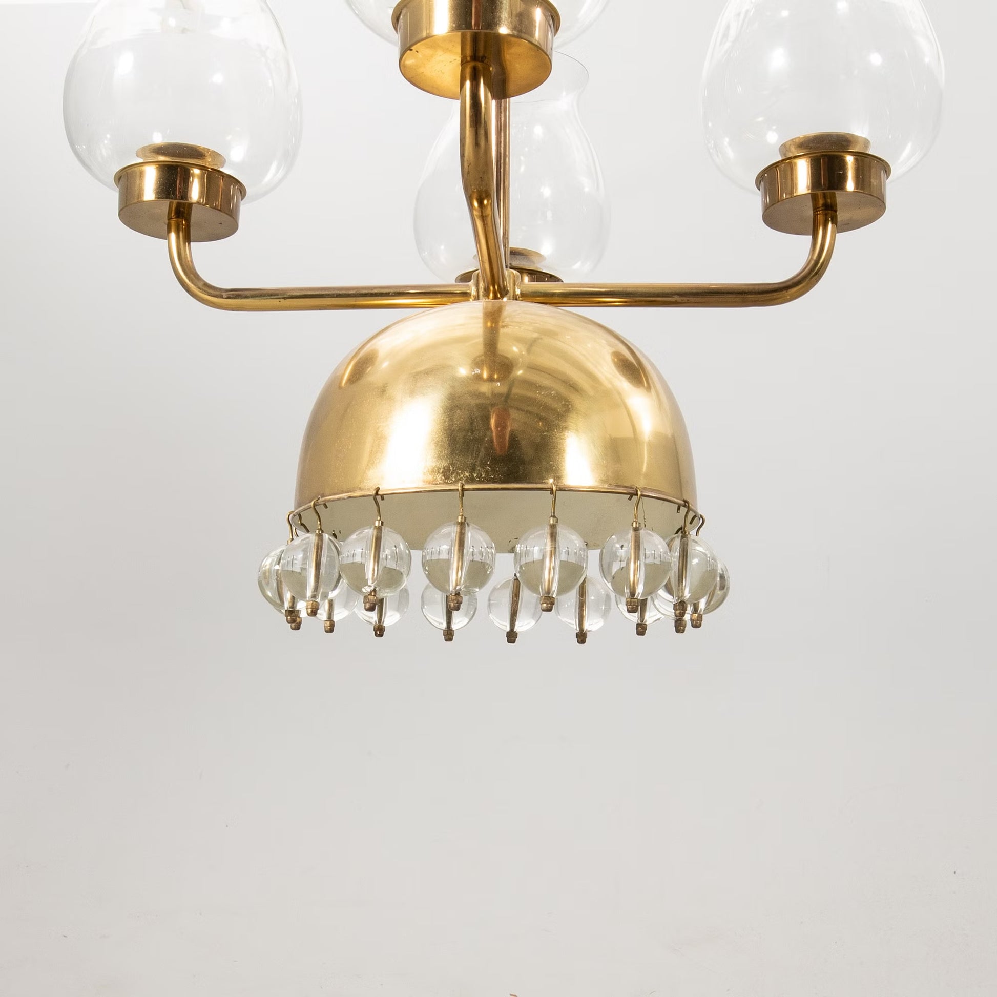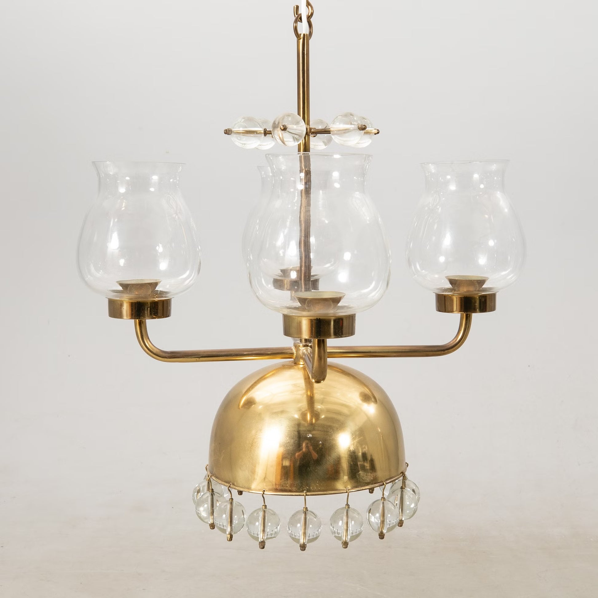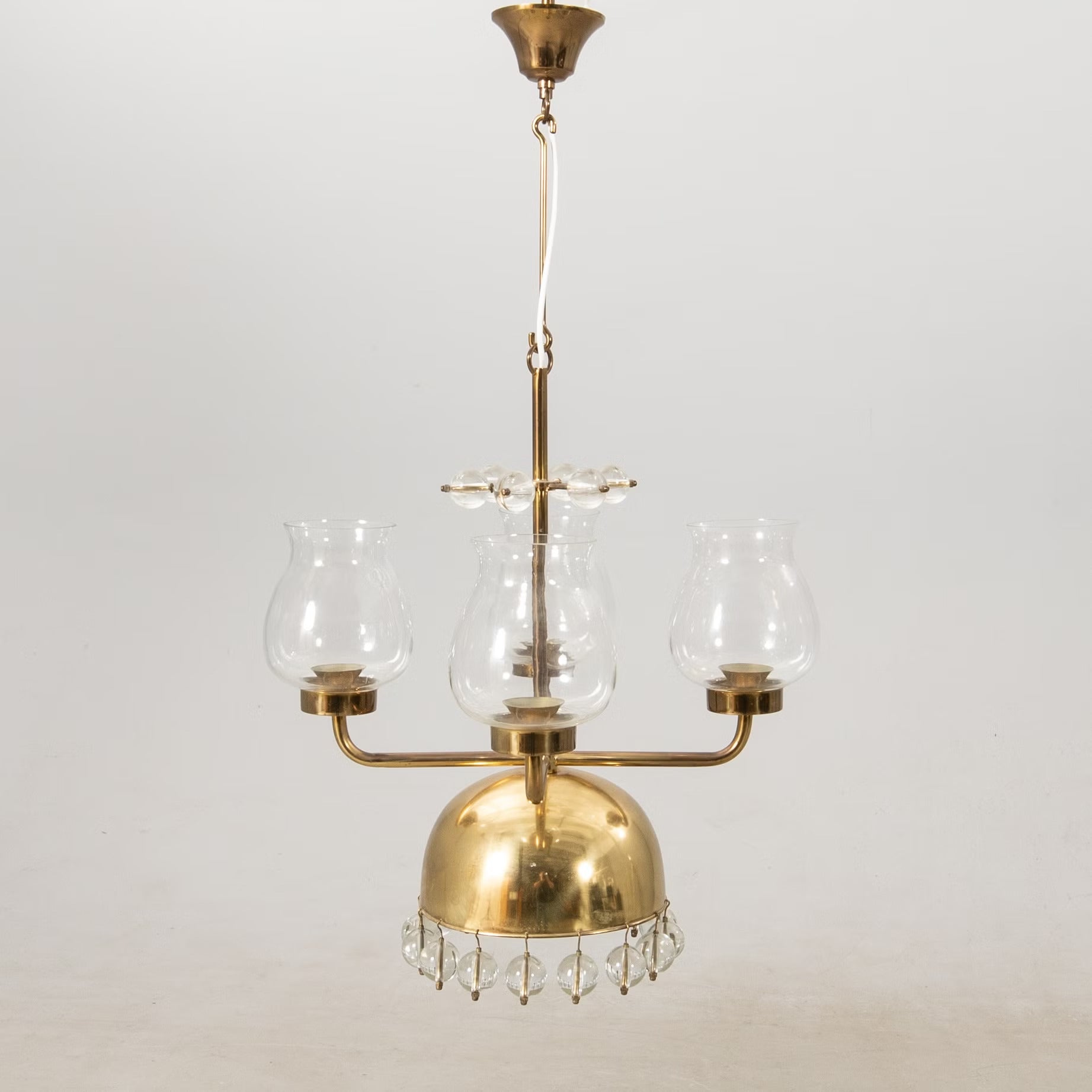 Erik Höglund chandelier Brass and Glass Sweden 1960