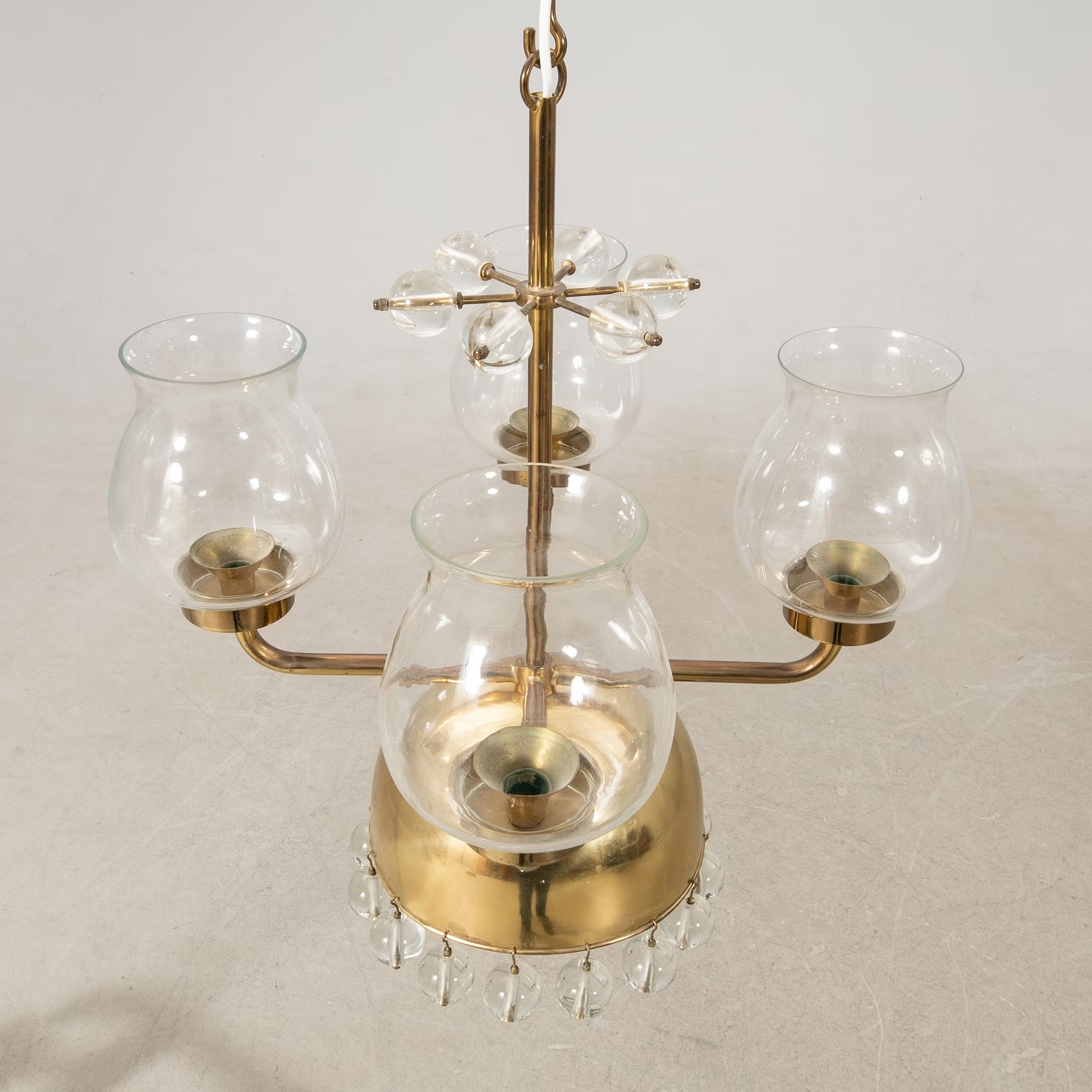 Erik Höglund, rare chandelier in glass and brass made in sweden 1960s. For four lights and one light point, brass and glass.