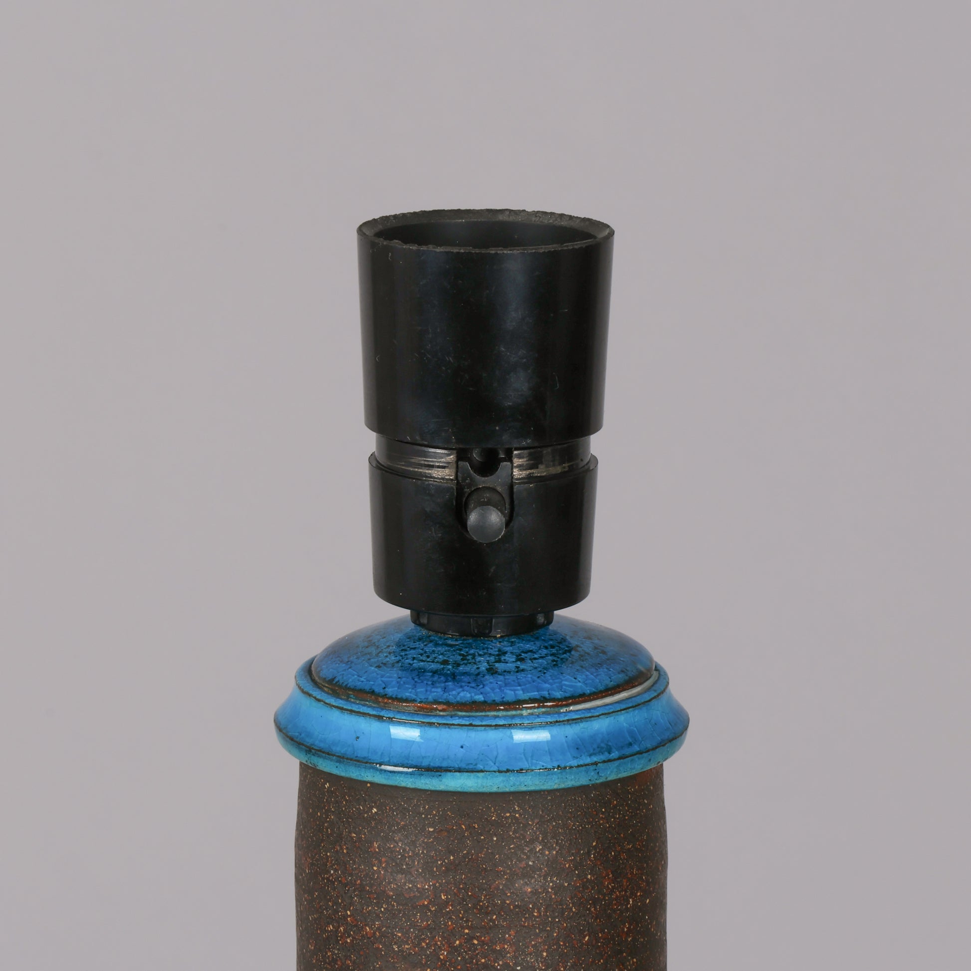Table lamp made of partly blue-glazed stoneware with slim neck and round base