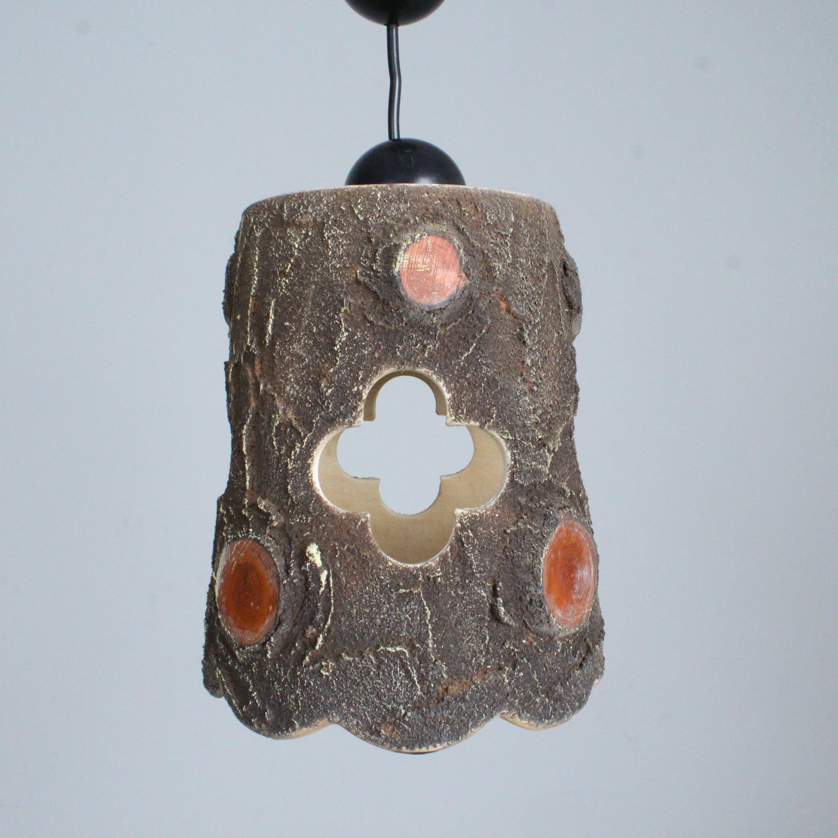 Brutalist ceramic lamp in the style of Provence Vallauris Ceramic in the shape of a tree trunk made in France around 1950.
